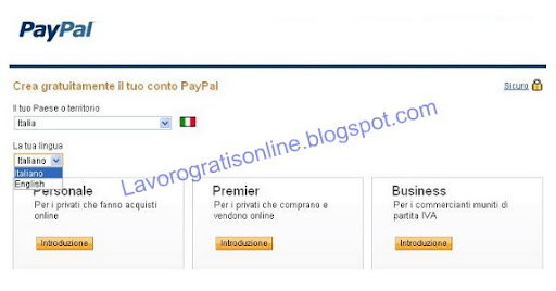 Se hai la partita IVA clicca il tasto bussines oppure crea un account premier per utenti privati